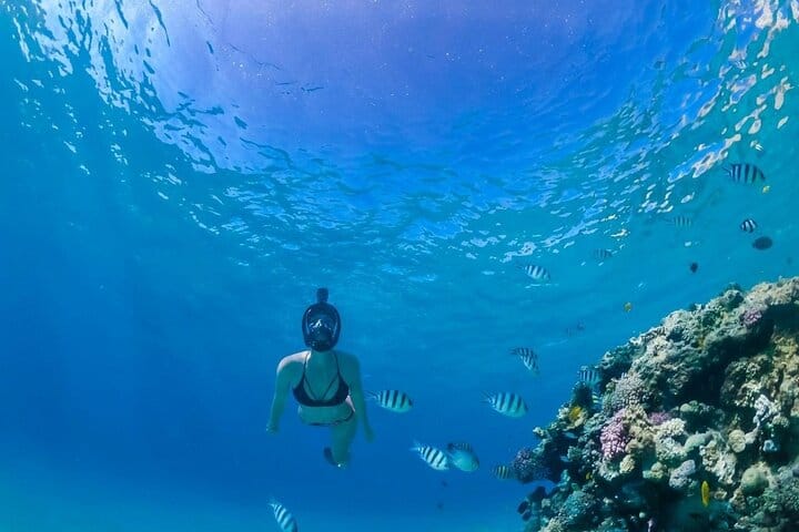 Visit two incredible snorkeling spots to explore vibrant coral reefs and colorful fish.